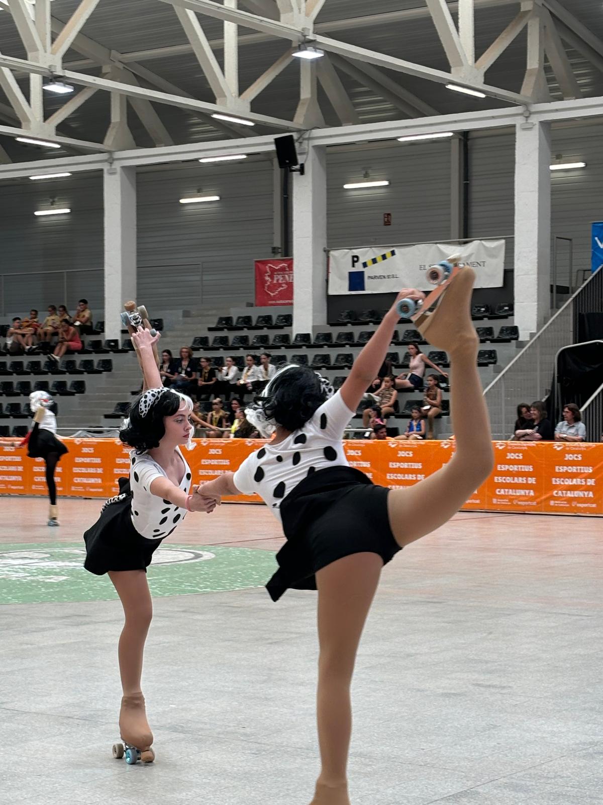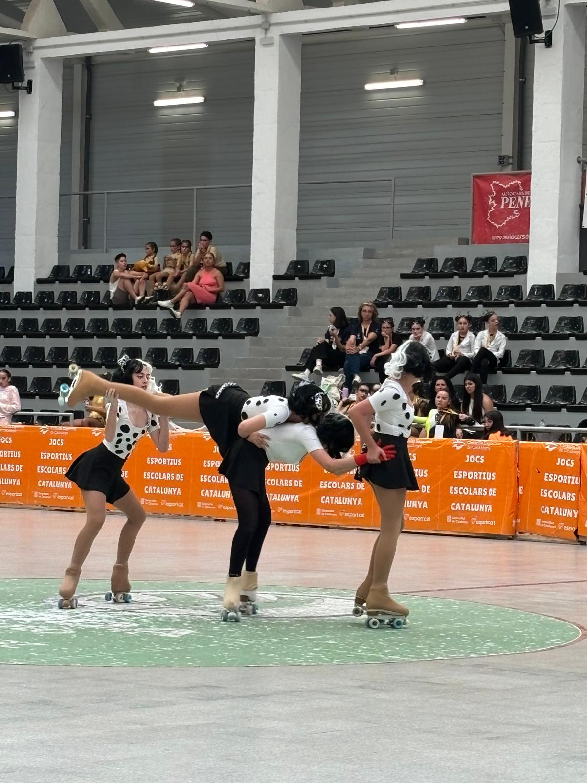 La secció de patinatge artístic de l’AE FS Arrels va tancar la temporada aquest diumenge amb un fet històric: la participació del trio Reines malvades i el quartet Crueles en els Finals Nacionals dels Jocs Esportius Escolars de Catalunya.