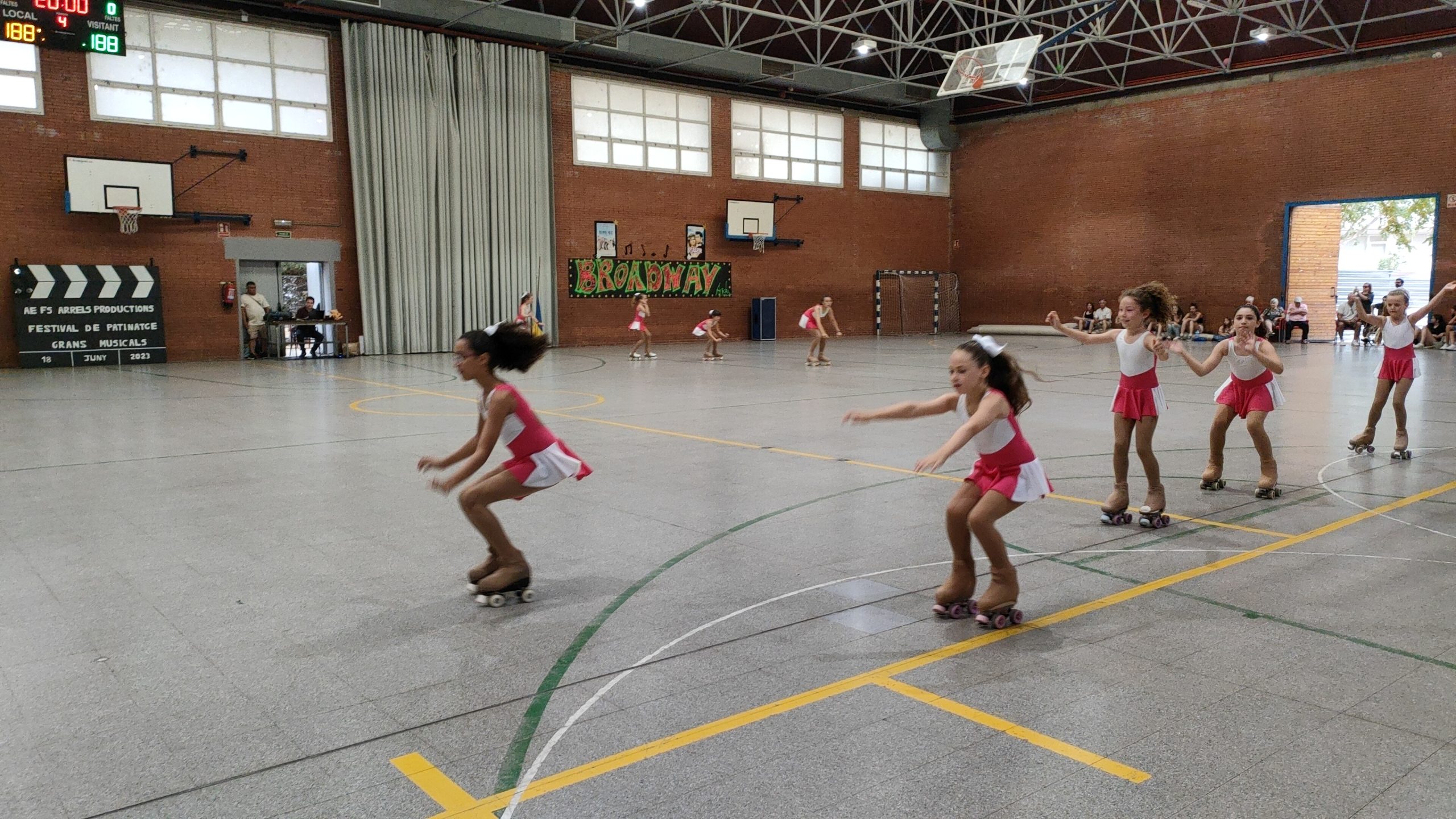 Després del descans, en què es va fer el sorteig de productes de patinatge artístic, va arribar el torn dels grups de la secció esportiva, amb les sis actuacions. El primer grup va ser el de les patinadores més petites, que van fer les delícies del públic amb El Rey León, seguides del grup de Grease, homenatjant el clàssic que van protagonitzar John Travolta i Olivia Newton-John. Matilda i Mary Poppins van ser les actuacions dels grups de 2n i 3r de Primària, i del grup de 4t i 5è de Primària, mentre que els dos grups de les grans (5è, 6è i ESO 1, i el grup ESO 2) van fer la seva interpretació de Mamma Mia i Chicago, un dels musicals més longeus de Broadway.