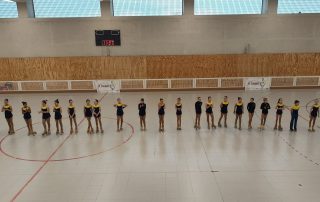 - El grup d’iniciació participarà en les trobades esportives organitzades pel Consell de l’Esport Escolar de Barcelona (Ceeb). És una activitat no competitiva (sense avaluació ni jutges) sinó simplement de participació, per fomentar i estimular la pràctica de l’esport, com a introducció a les futures competicions. En aquestes trobades els i les esportistes participen realitzant una coreografia en grups de màxim vuit/nou integrants (segons les normes del Ceeb).